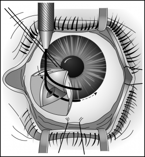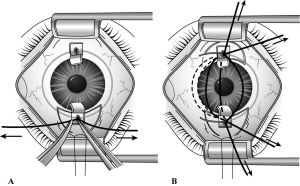 - With initial rotation of the metal Trabeculotome, if it is directed posteriorly, movement of the iris will be seen. If this position is not corrected, an iridodialysis will occur.