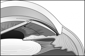 - If a 25-gauge needle is used for the procedure, care should be taken to enter the cornea parallel to the iris so that the flexible needle does not pivot in an anterior-posterior direction while the angle incision is being created.