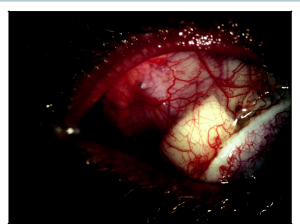 In our practice, when patients require 2 to 3 topical medicines preoperatively to control their glaucoma, we generally recommend glaucoma drainage implant surgery prior to undergoing keratolimbal allograft surgery. In general, the glaucoma worsens following the keratolimbal allograft surgery, and it is desirable to minimize topical glaucoma medicines following the stem cell transplant. It is also possible to place a tube shunt follow-ing keratolimbal allograft surgery. Careful attention needs to be taken to preserve the keratolimbal allograft integrity during the tube shunt insertion (Figure 3).
