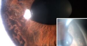 Essential Iris Atrophy: The most striking form of ICE with significant iris stromal disruption, corectopia and ectropion uvea.