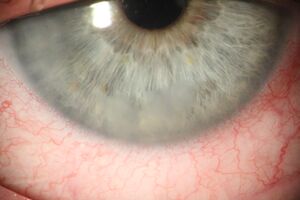 Phacoantigenic Glaucoma is a granulomatous inflammation resulting from sensitization to lens proteins post cataract surgery or trauma. The previously used descriptor was “phacoanaphylaxis”, however this term is no longer used since the disease process is not an allergic response. Occurrence is now uncommon (less than 1% of cataract surgeries) after introduction of modern phacoemulsification techniques which enhanced removal of most or all lens material at the time of cataract surgery. The immune response usually occurs within two weeks of surgery/trauma and involves an immune complex reaction mediated by IgG and the complement system.